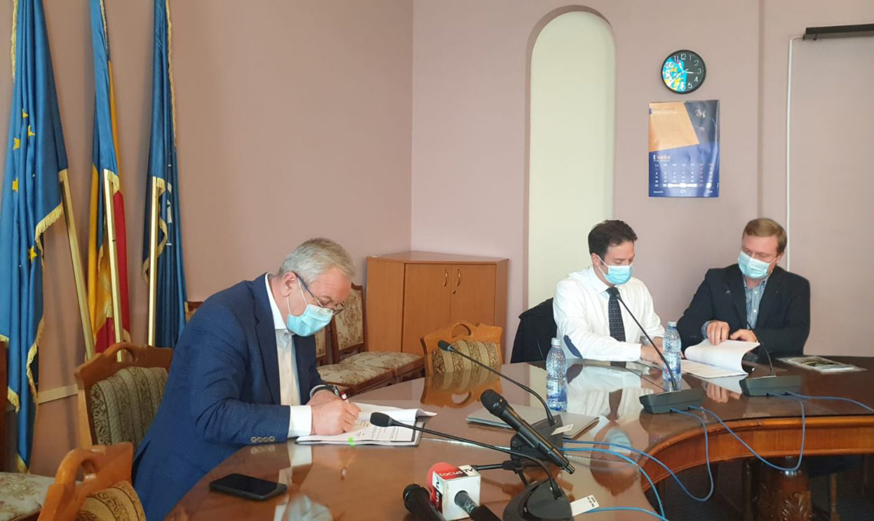 Foto: Ceremonia oficial de firma en el ayuntamiento de Buzău. De izquierda a derecha: Alcalde de Buzău, Sr. Constantin Toma; El director ejecutivo de New Kopel, Sr. Tal Lahav; y Jefe de Asuntos Legales en New Kopel, Sr. Stefan Ichim [Imagen: Buzoienii.ro]