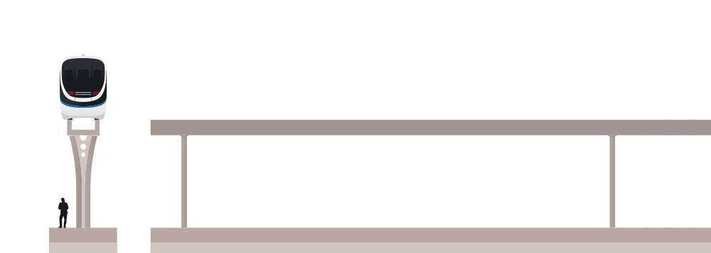 With a small dynamic envelope, tight turning radius, and no guideway electrification, SkyShuttle alignment can be designed to fit within the urban environment, including going through buildings.